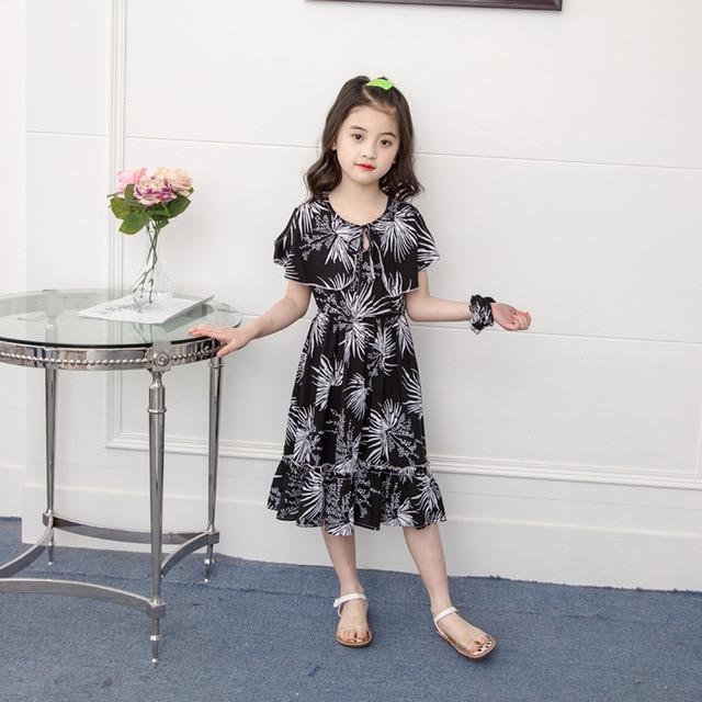 This children's dress is crafted from comfortable cotton fabric, and features a mid-calf length, O-neck collar, regular short sleeves, a casual A-line silhouette, and an eye-catching floral leopard print with ruffle details. Please note: Allow for slight deviations in manual measurements, and results may vary due to differences in monitor and light effects.