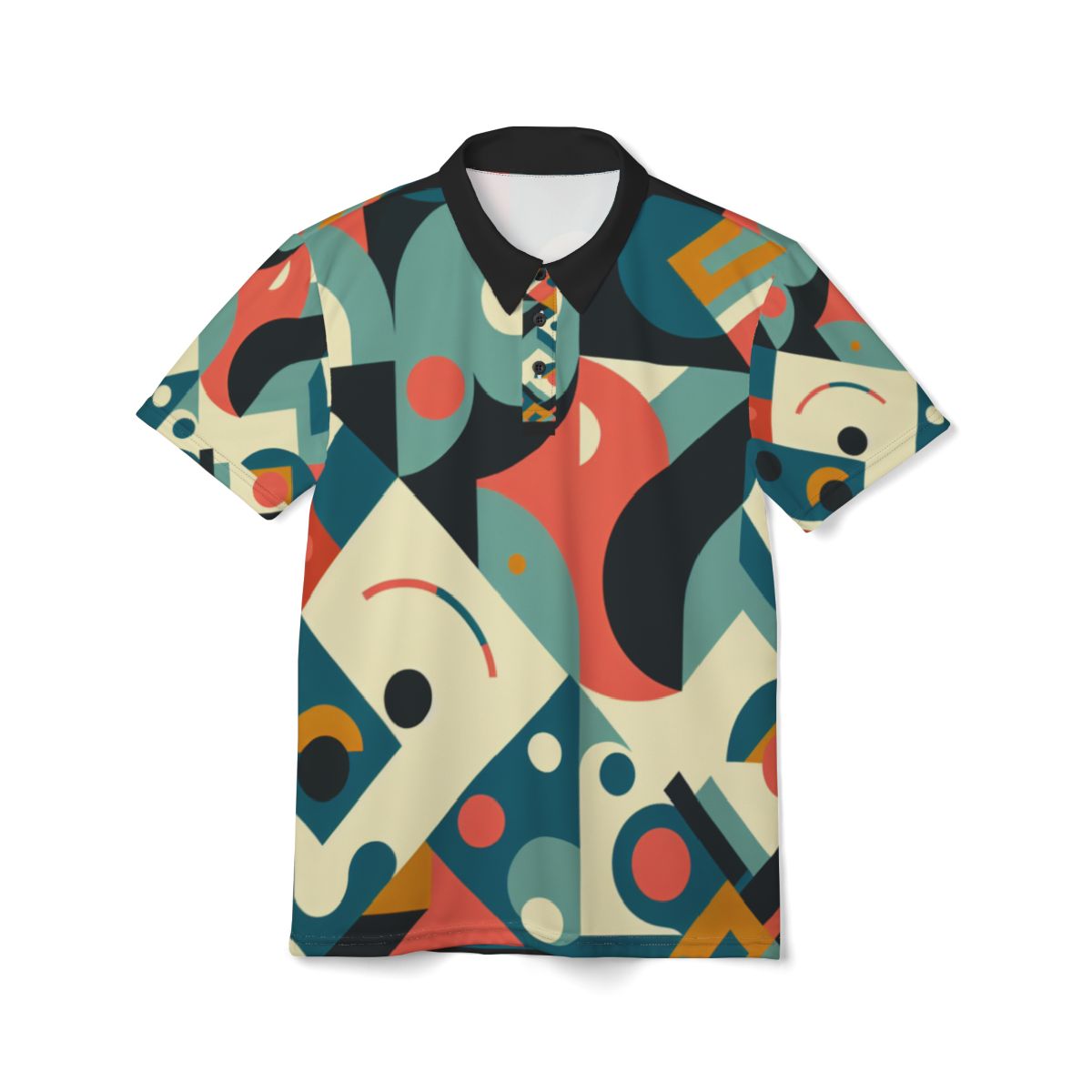 Geometric bold pattern polo shirt made of 100% Polyester fabric, giving a modern and stylish vibe. Perfect for casual wear or dressing up a look. Ideal for those who appreciate unique and eye-catching designs. Great for holidays, parties, and everyday wear.