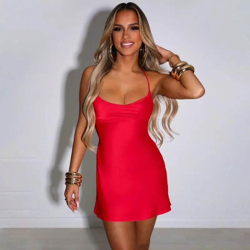 Ins Sexy Suspender Mini Dress With Lace-up Design